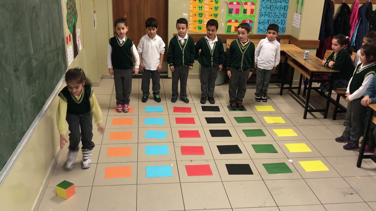 Masada duran sarı, kırmızı ve mavi renklerden birini söyleyerek öğrencilerden o renge dokunmadan başka renkteki kağıdı dokunmalarını istemektedir. Oyun sırasında öğretmen sürekli olarak renk isimleri söyleyerek öğrencileri yönlendirmekte ve "hızlı davranacaksınız" gibi teşviklerde bulunmaktadır.